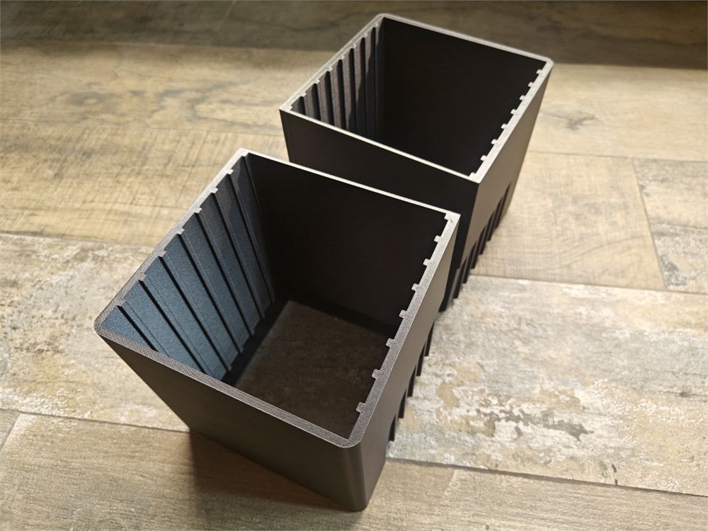 Печатается на 3d принтере, пластик petg с карбоном. Вклейка Eva, насечка 5x5 мм. Размер поля для приманок 150 ширина 170 высота, глубина 10 + 5 зазор.